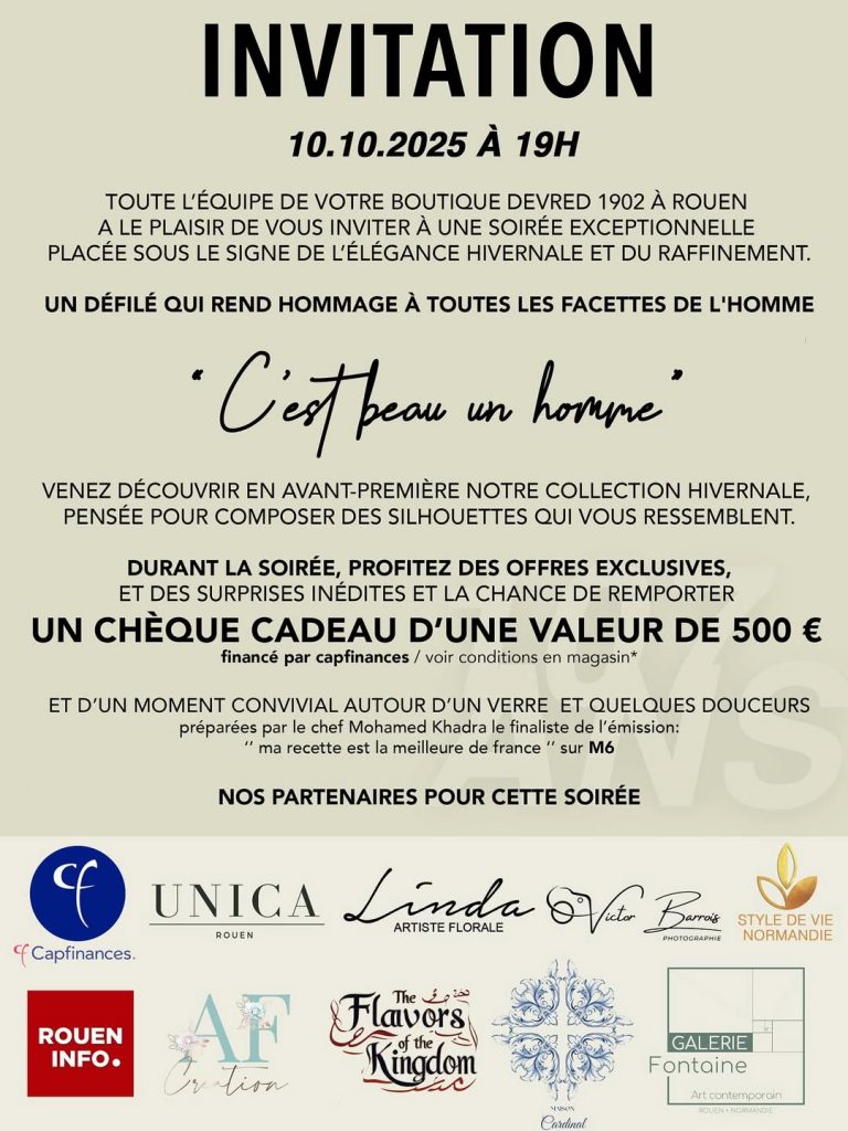 Le centre-ville de Rouen s’apprête à vivre une soirée un peu particulière le vendredi 10 octobre 2025 à 19h. La boutique de prêt-à-porter Devred rue du Gros-Horloge organise un défilé de mode pour présenter sa nouvelle collection hivernale, dans une ambiance qui se veut élégante mais aussi conviviale.